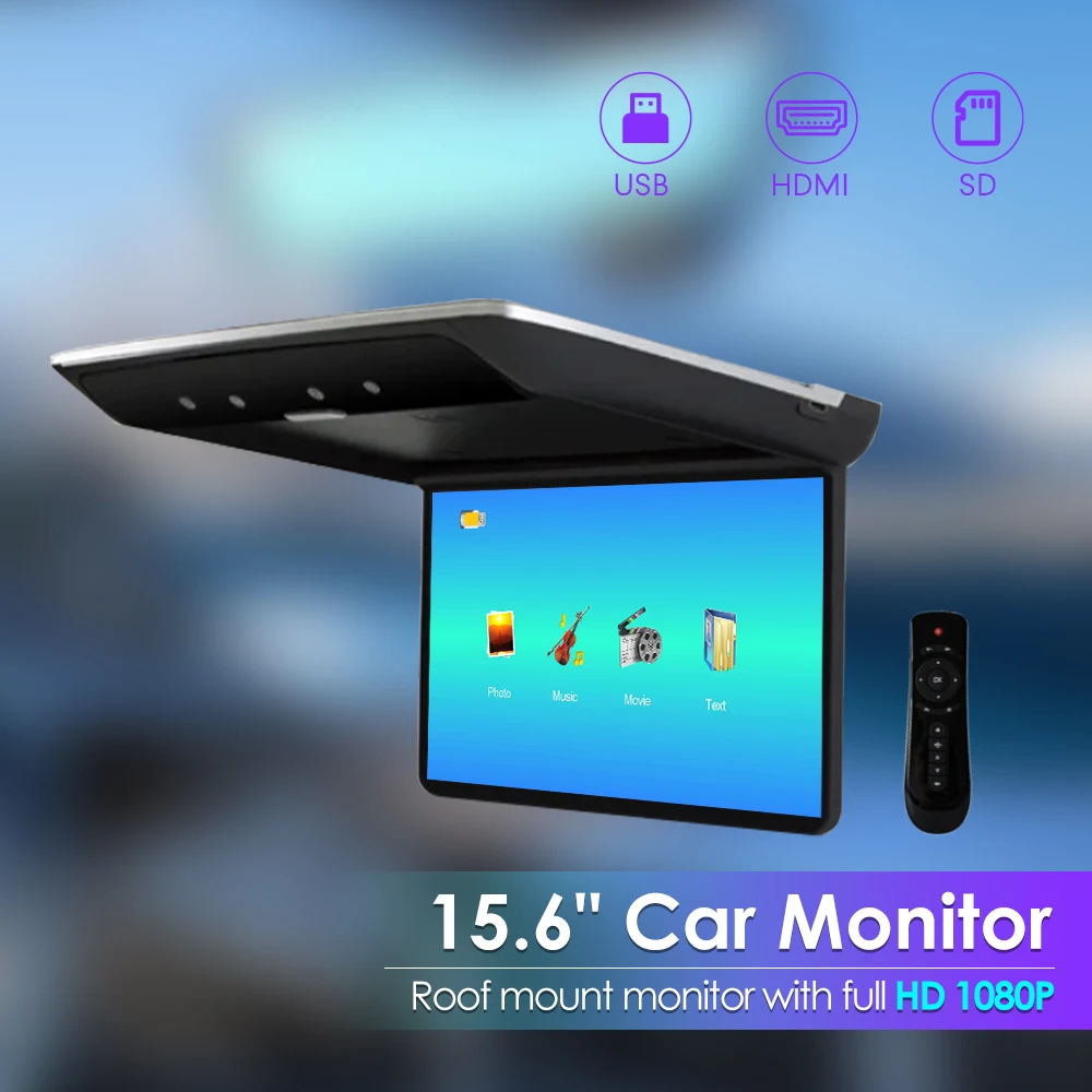 15.6 Inch Car Roof Monitor TV Flip Down 1080P Video HD Screen MP5 Player IPS Screen With 16-color Ambient Light USB SD HDMI FM