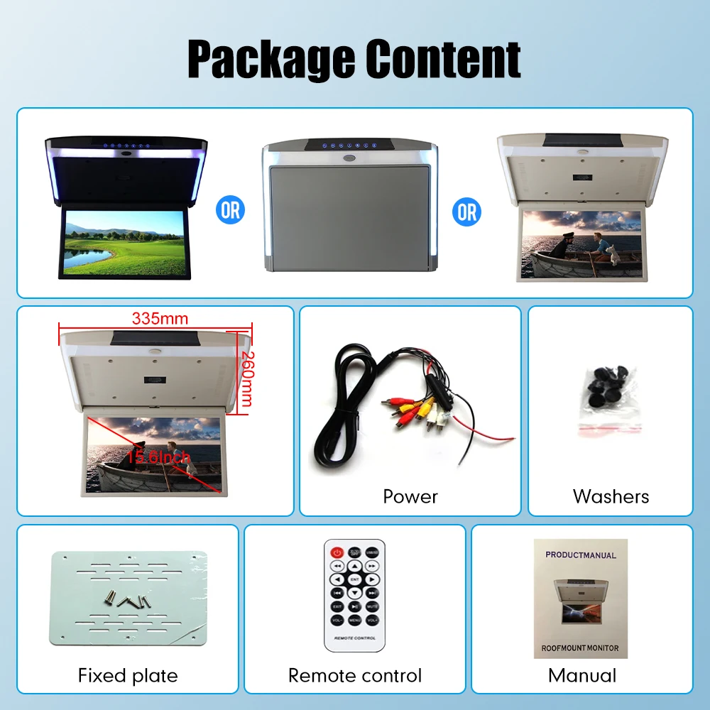 15.6 Inch Car Roof Monitor TV Flip Down 1080P Video HD Screen MP5 Player IPS Screen With Blue Ambient Light USB SD HDMI FM